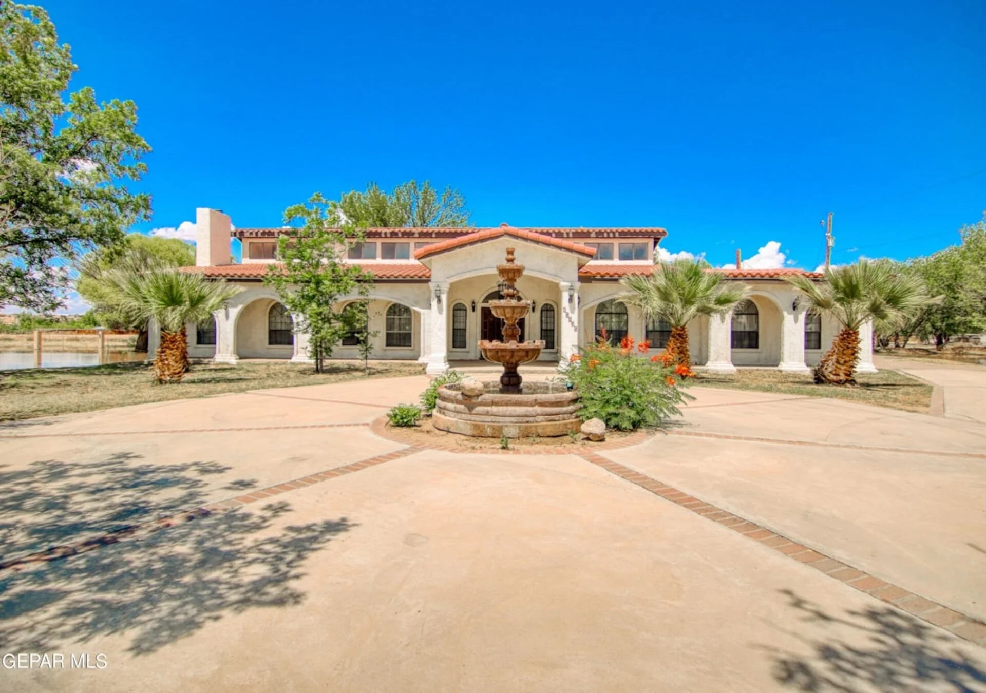 Welcome to your own piece of paradise absolutely stunning hacienda-style ranch home with an abundance of luxurious features with its spacious 8000 sqft of living space this home is an entertainers dream with 5 bedrooms 4 bath this home offers plenty of room for large families and guests the inclusion of both a living room and a formal living room suggests ample space for family entertainment and gatherings the master bedroom sounds like a retreat in itself complete with a wood-burning fireplace shower bathtub double sinks with a linen closet its great to hear that all rooms are spacious enough for king-size beds and include built-in shelves for added convenience the beautiful kitchen with a built-in island custom double shelf cabinets and a huge walk-in pantry is a chefs dream a mother-in-law room with its own entrance adds flexibility for guests or extended family members the heated indoor pool with a jacuzzi and a venue with a bar provides year-round entertainment options