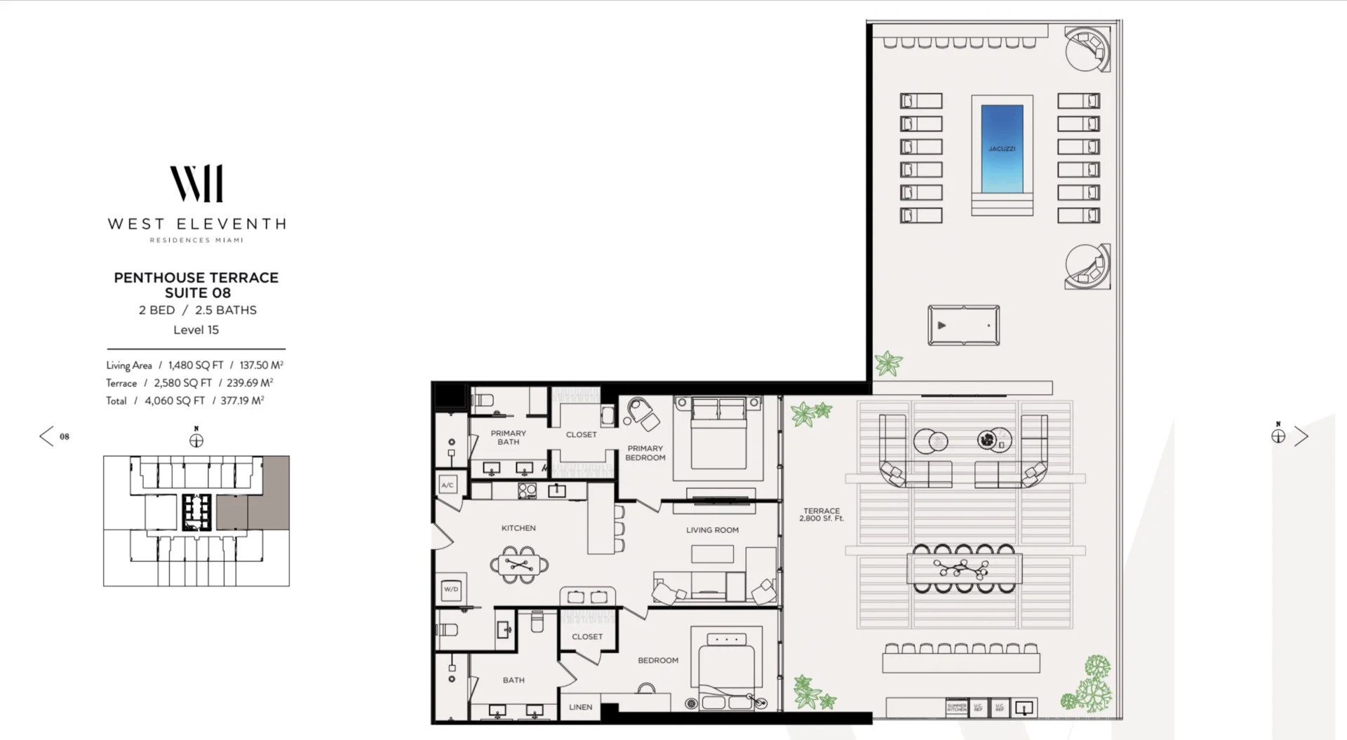 This penthouse suite boasts an enormous terrace essentially offering a private outdoor oasis high above the city with panoramic views to the northeast and east residents will enjoy breathtaking sunrises and an expansive skyline vista its luxurious space is unparalleled for hosting large gatherings or enjoying serene private moments